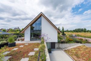“Groene daken en het afkoppelen van hemelwaterafvoer hebben wij al meer dan 30 jaar als uitgangspunt. Vooral omdat lelijke elementen als de goot en hemelwaterafvoer achterwege kunnen blijven. Via grindputten vermijden we het riool.”